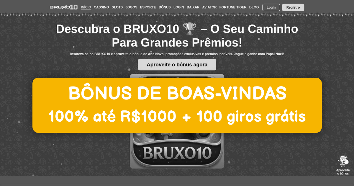 Comece sua jornada com nosso bônus de boas-vindas: 100% até R$1.000 no primeiro depósito, mais 50 rodadas grátis em slots selecionados. O requisito de aposta é de 30x o valor do bônus, válido por 30 dias. Use o código promocional BRUXO100 ao depositar. É uma oferta legítima e emocionante para novos jogadores.